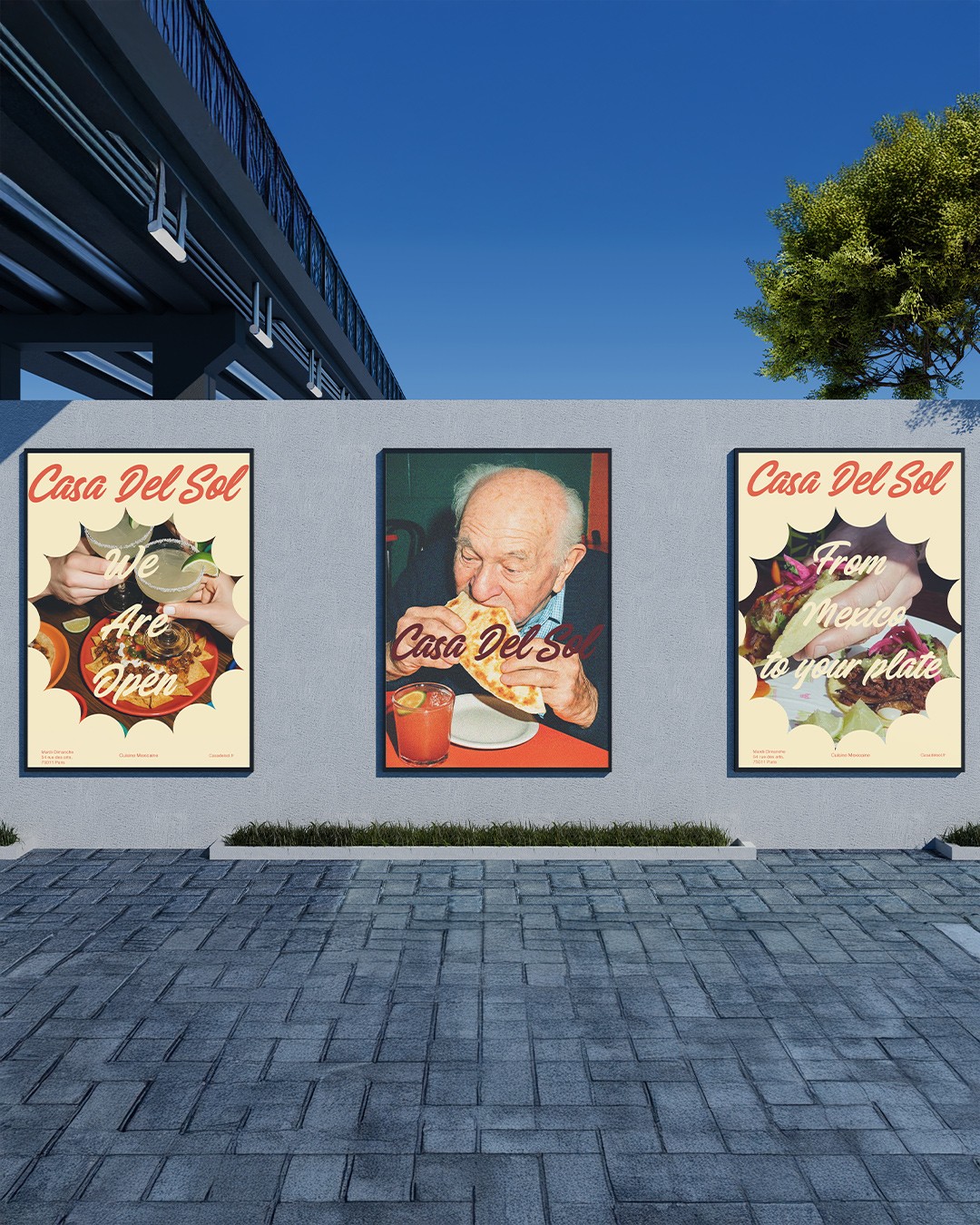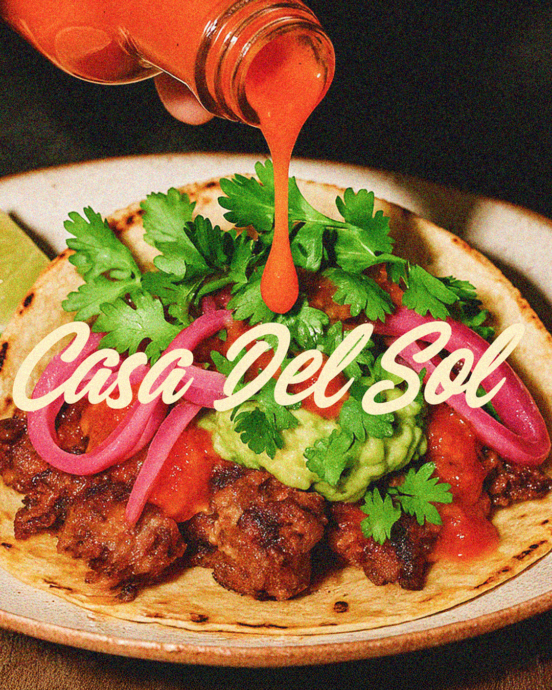 Chaque image raconte une histoire : celle du goût, du plaisir et de la convivialité.Créant un univers à la fois solaire et nostalgique. Casa del Sol, c’est cette idée que le Mexique n’est pas seulement une cuisine : c’est une atmosphère, un moment de vie, une émotion que l’on retrouve dans chaque détail du branding.
